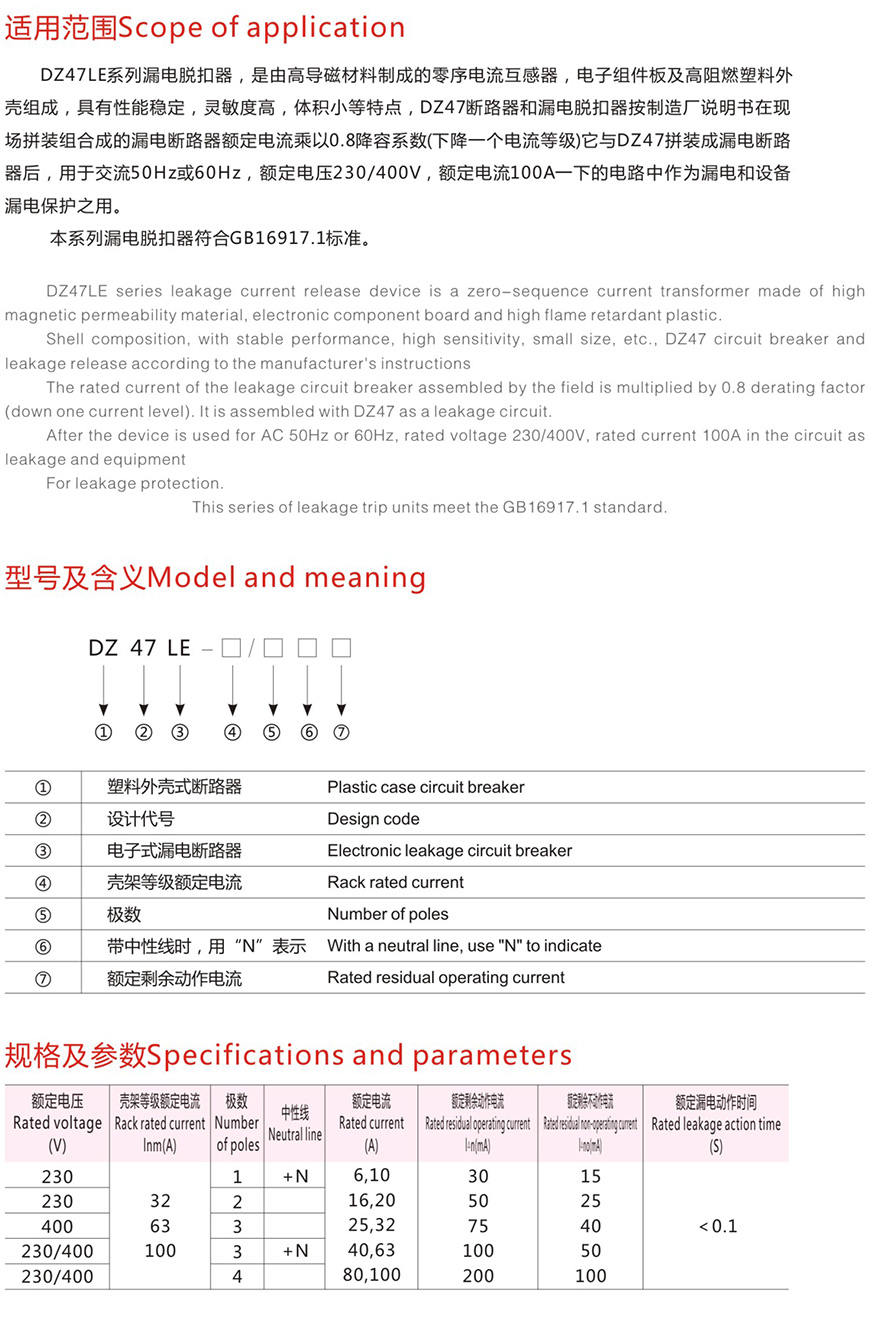 DZ47系列小型漏电断路器